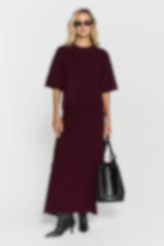 The model is 171 cm tall and wears size S. Introducing our Israa Knitted Skirt, crafted from a superfine alpaca blend, offering a flattering midi length with a ribbed elastic waistband. Pair with our Madina Short Sleeve Knit for the complete look.