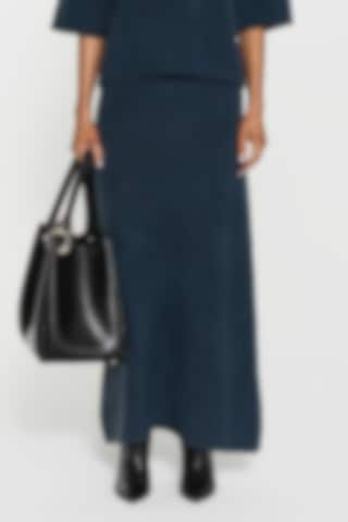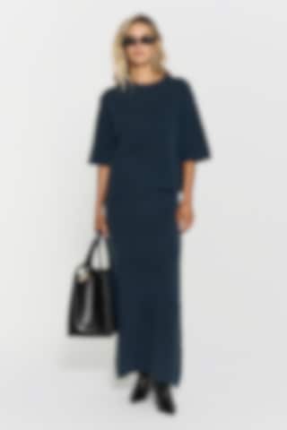 The model is 171 cm tall and wears size S. Introducing our Israa Knitted Skirt, crafted from a superfine alpaca blend, offering a flattering midi length with a ribbed elastic waistband. Pair with our Madina Short Sleeve Knit for the complete look.