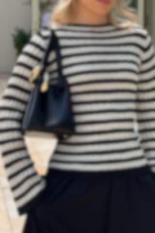 The Karlie Knitted Top features a boat neckline and subtle trumpet sleeves for a modern, refined look. The ribbed knit and striped design lend it an effortless sophistication, making it a comfortable piece for everyday wear. Model is 176 cm tall and is wearing size S.