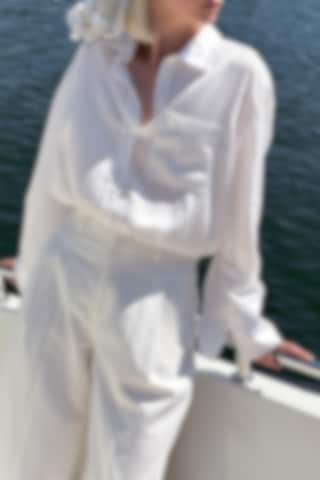 The Kiara Fluid Shirt features luxurious lyocell for a fluid feel, an oversized fit, and adjustable cuffs, combining comfort with effortless style.