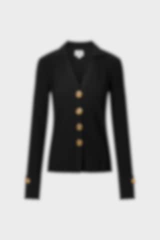 The model is 171 cm tall and wears size S. Enea Cardigan is a beautifully crafted piece with a decorative collar and cuffs, a flattering ribbed fit that enhances your silhouette with elegance and style.
