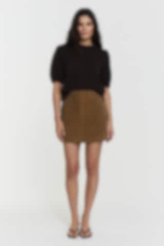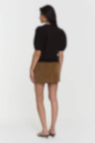 The Iris Knitted Top features heavy organic cotton, stylish puff shoulders, short sleeves, and a rounded neckline for a chic, comfortable look. The model is 171 cm and wears size S.