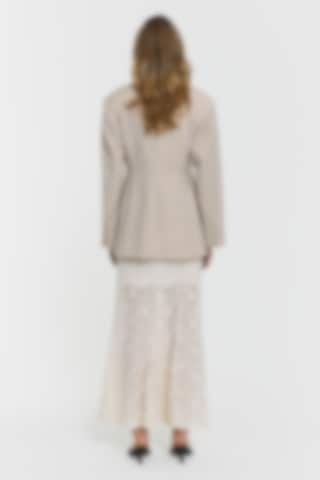 The Akasha Lace Skirt features a delicate creased texture, an elegant a-line silhouette and a removable lining for versatile styling options.