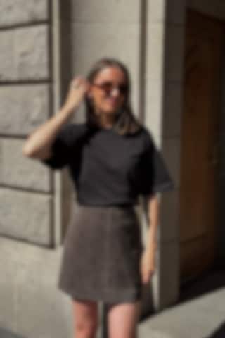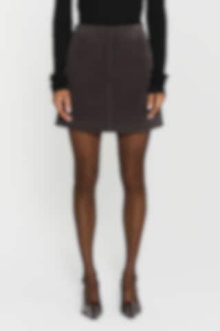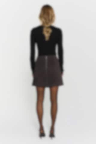 The model is 171 cm tall and wears size S. The Hollow Skirt is a sleek mini crafted from 100% suede. Fully lined with a clean zip closure, it’s a bold yet refined piece that adds edge and elegance to any look.