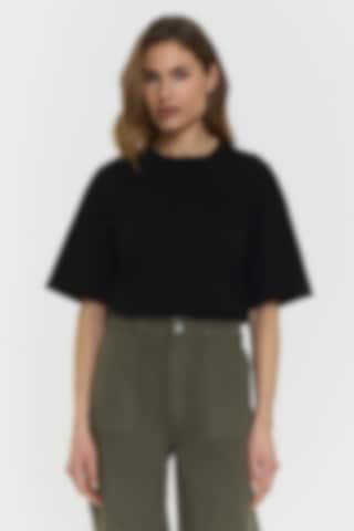 The model is 176 cm and wears size S. Our chic Chelsey cropped Tee features a relaxed design for a stylish and elevated look. Perfect for pairing with high-waisted trousers or skirt.