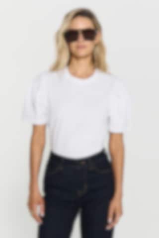 Isa puff sleeve is an organic cotton tee with a straight, relaxed fit with puff-sleeves.