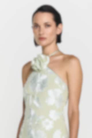 Discover floral allure in our exquisite Rose Dress. Adorned with intricate flower details and featuring a removable rose at the neck, this halter neck dress combines elegance with a hidden zipper and adjustable bands for a perfect blooming fit. The model is 171 cm and wears size XS/34