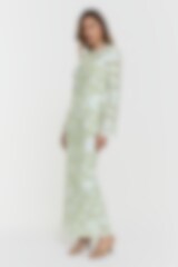 Our Frances Dress, a vision of elegance. Adorned with delicate flower details, this enchanting design features an alluring open back, secured by a hidden zipper and adjustable neck ties for a perfect fit. The maxi length and subtle back slit add a sophisticated finish to the look.