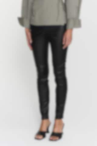 The Arleen Trousers offer a chic and comfortable choice for various occasions. Crafted from smooth and flexible polyurethane leather, they provide a soft feel against the skin.