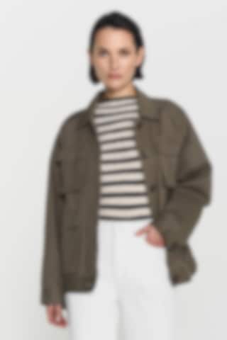 The Zelda Jacket, expertly crafted from hard-wearing cotton-twill. It has an oversized fit, big patch pockets, adjustable flaps in sides, and a classic cuff at the sleeve end.