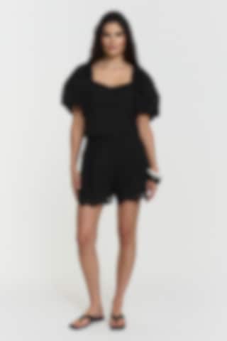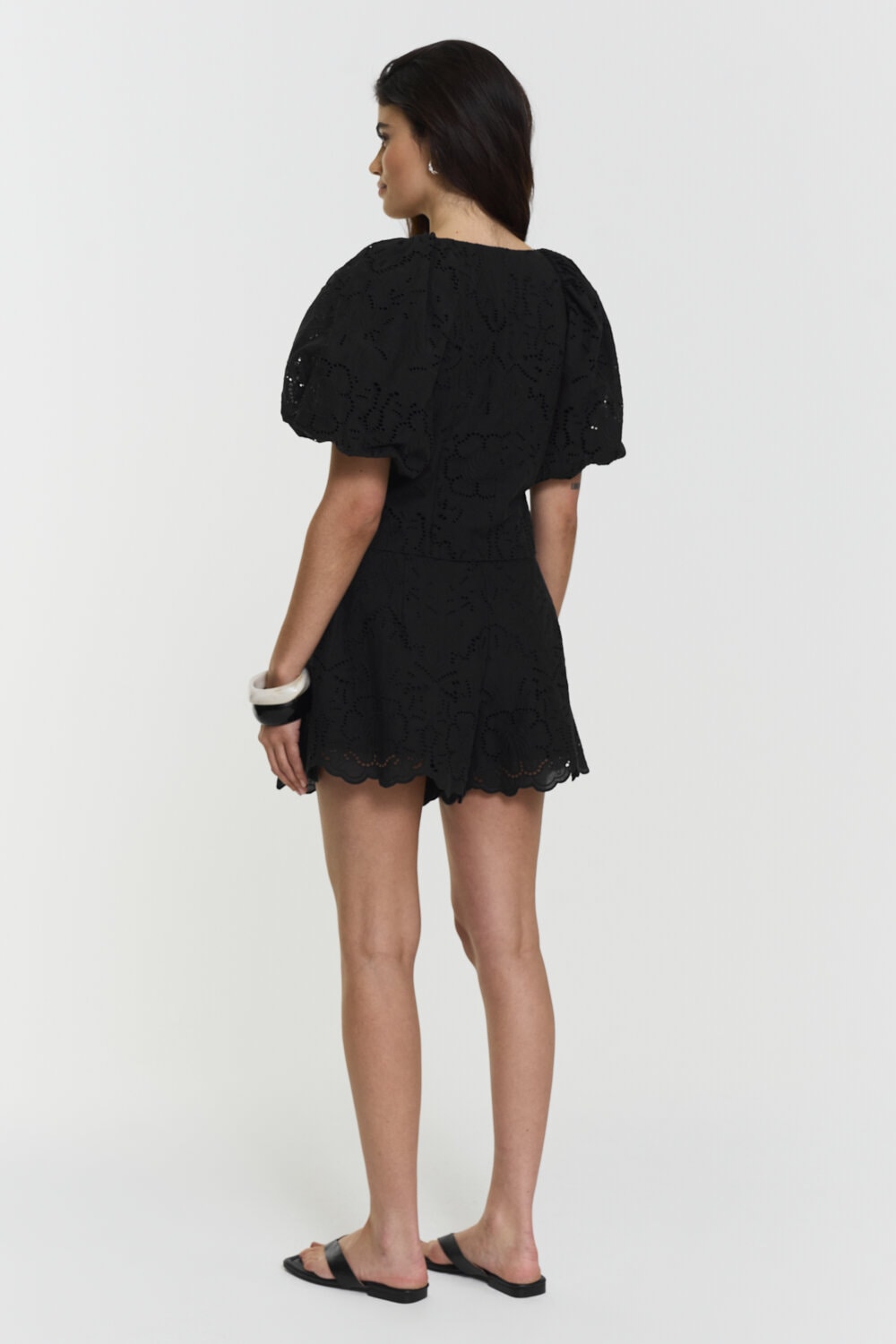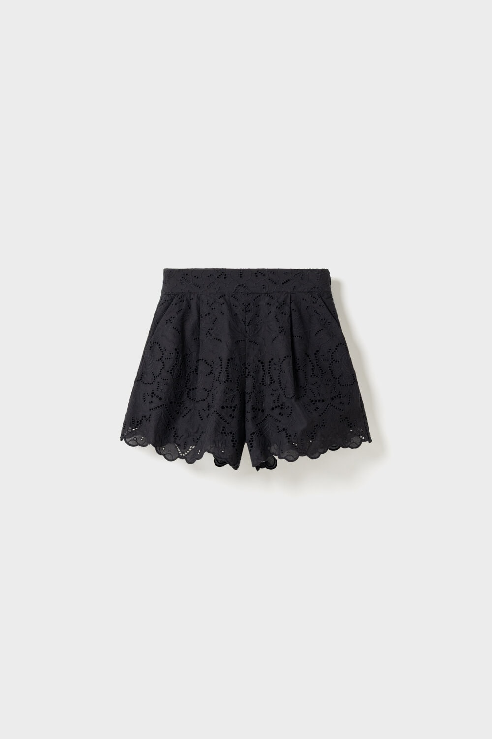 The Meira Broderie Shorts showcase delicate broderie anglaise with pressed pleats and a scalloped edge. Designed with a high waist, side pockets, and a hidden zip.